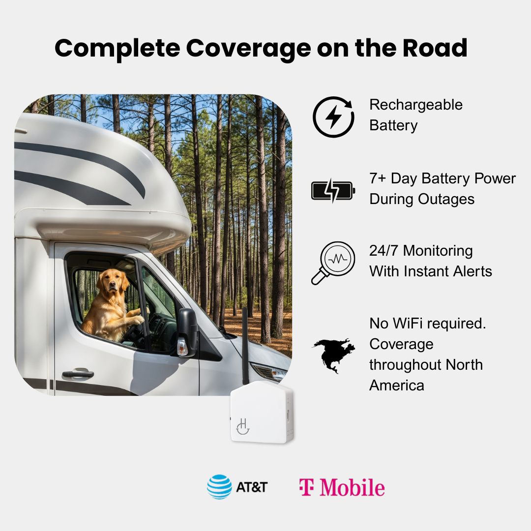 Whether you're traveling in your RV or managing off-grid properties, stay connected to what matters most. Our cellular monitoring works anywhere with cell coverage, giving you real-time updates on temperature, security, and system status no matter how remote your location.
